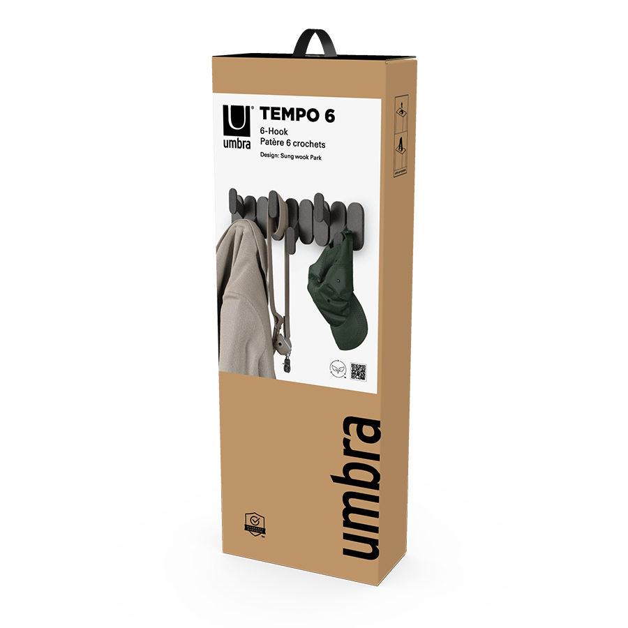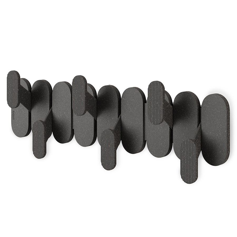 Настенная вешалка Tempo органично сочетает в себе актуальный дизайн и функциональность. Шесть крючков, расположенных в шахматном порядке, создают на стене выразительный графический акцент. Изделие изготовлено из переработанного пластика с добавлением древесного волокна. Прочная конструкция выдерживает значительные нагрузки.