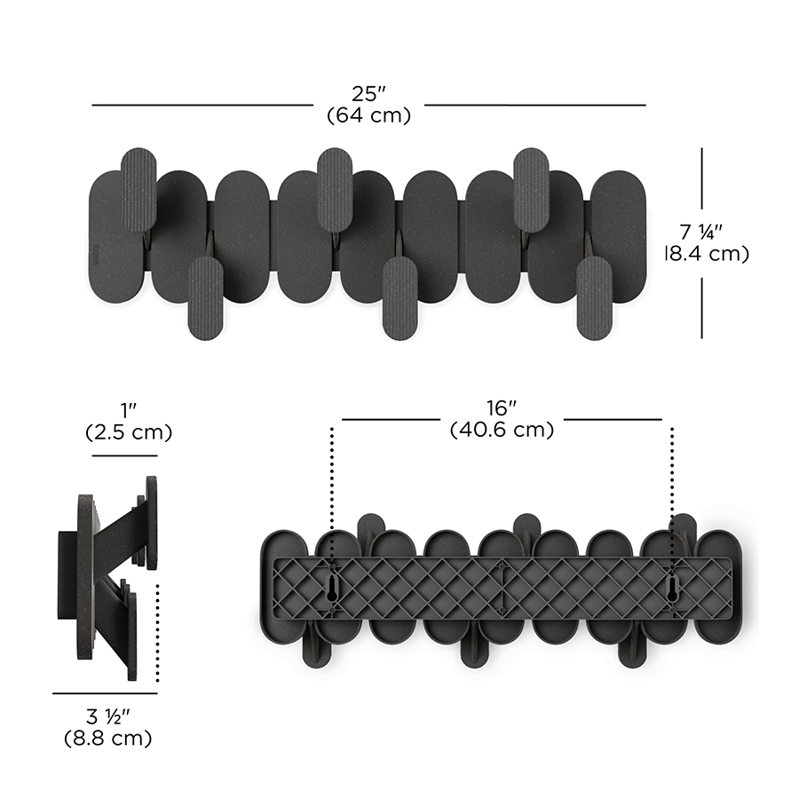 - Шахматное расположение шести крючков позволяет разместить несколько предметов одежды без их соприкосновения.